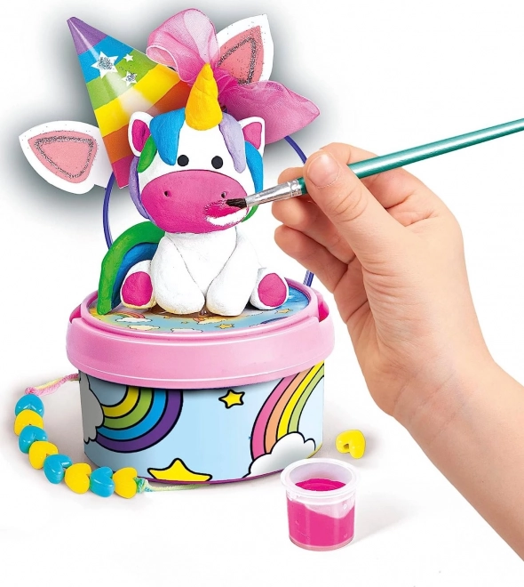 Dzięki kreatywności świat od razu staje się bardziej kolorowy! Ten zestaw pozwala stworzyć uroczą opaskę, bransoletkę z koralików, szkatułkę na biżuterię lub pudełeczko na drobiazgi z figurką jednorożca. W zestawie znajduje się także kolorowy breloczek z pomponem. Rozwija kreatywność, wyobraźnię i zdolności manualne.