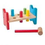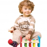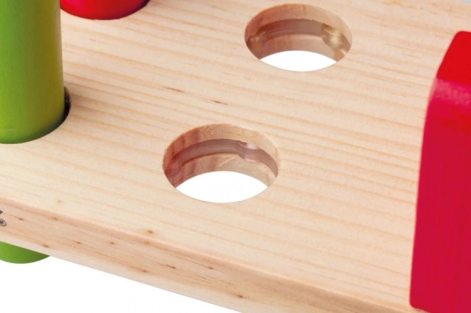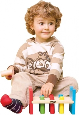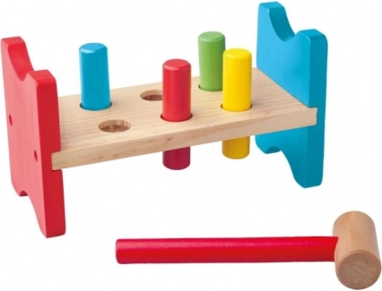 Wbijanie kołeczków młoteczkiem wzmacnia małą motorykę, koordynację oko–ręka oraz precyzję ruchów u najmłodszych dzieci.