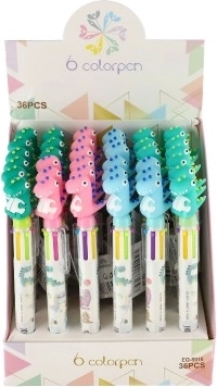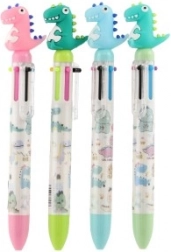 Zabawny wielokolorowy długopis z motywem dinozaura wnosi do pisania dużo barw i radości. W środku kryje 6 kolorów tuszu, które można łatwo przełączać jednym kliknięciem. Dzieci pokochają go do szkoły i do domu dzięki zabawnej stylistyce i praktycznej obsłudze.