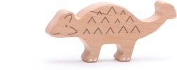 Drewniane dinozaury wykonane są z drewna bukowego, znanego z wytrzymałości i ekologiczności. Zabawki malowane są bezpiecznymi, nietoksycznymi farbami.