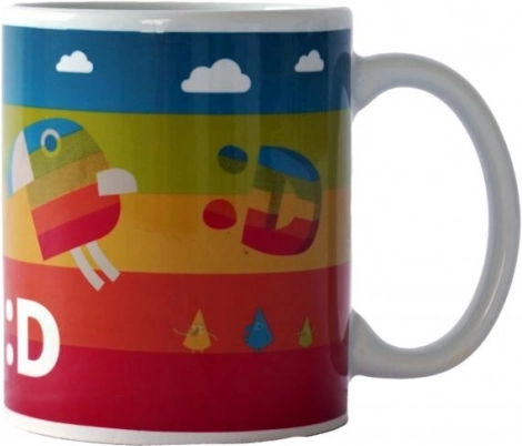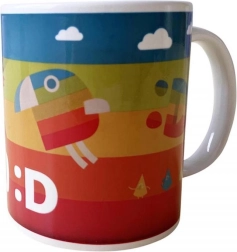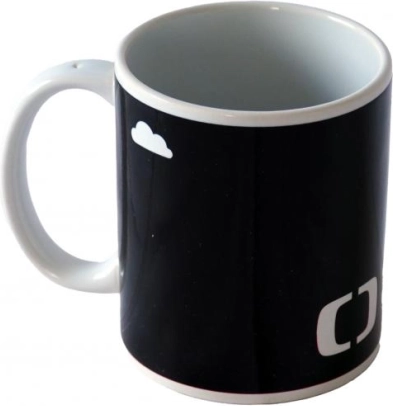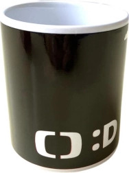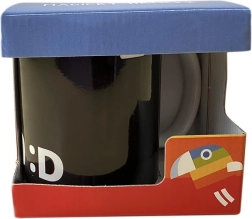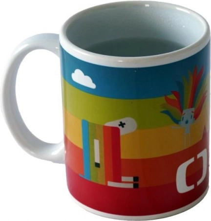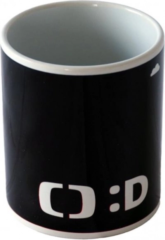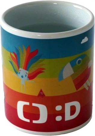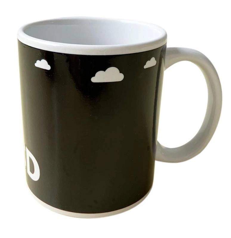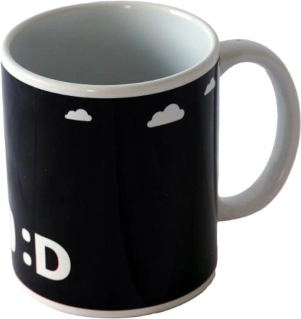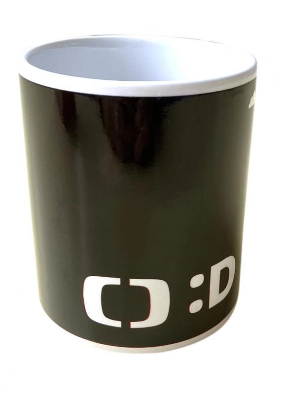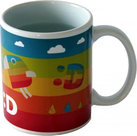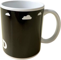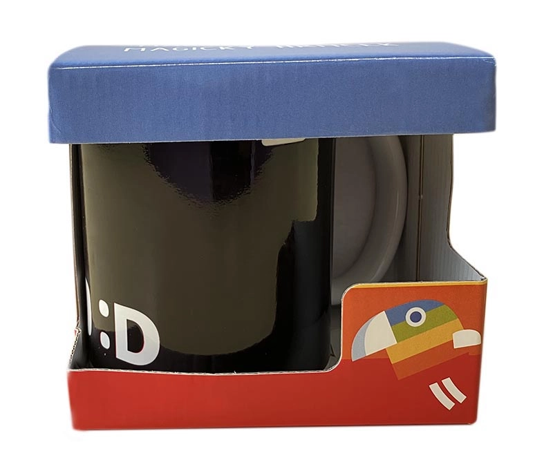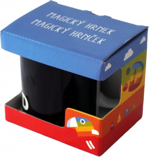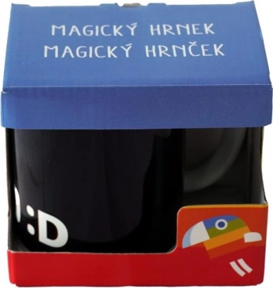 Termochromatyczny nadruk po zalaniu gorącym napojem odsłania wesołe motywy Déčko – po ostygnięciu kubek ponownie staje się czarny.