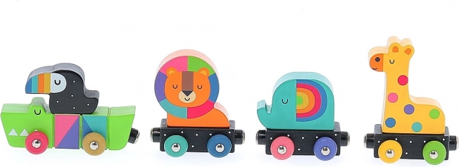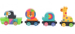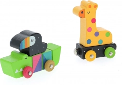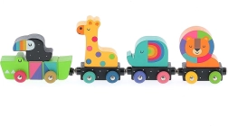 Wyrusz z dziećmi na kreatywną podróż z kolorowym pociągiem ze zwierzątkami od uznanego ilustratora Andy'ego Westface. Ten unikalny zestaw drewniany zawiera klocki o różnych rozmiarach, kształtach i barwach. Lokomotywa i wagoniki, które przedstawiają zwierzęta takie jak krokodyl, lew, słoń i żyrafa, są w przemyślny sposób połączone magnesami. Dzieci będą się cieszyć nie tylko z układania, ale także z poznawania zwierząt.