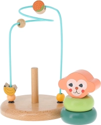Zabawka została zaprojektowana tak, aby rozwijać małą motorykę i zdolności poznawcze, gdy dzieci przesuwają kolorowe koraliki po metalowych drutach.