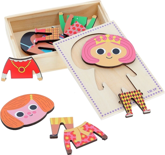 Ta drewniana układanka uklejanka oferuje dzieciom możliwość stylowego ubierania postaci Jade. Z 6 różnymi kompletami mogą dzieci kombinować stylizacje i rozwijać swoją wyobraźnię.