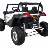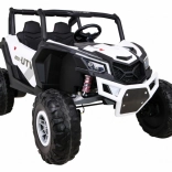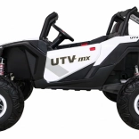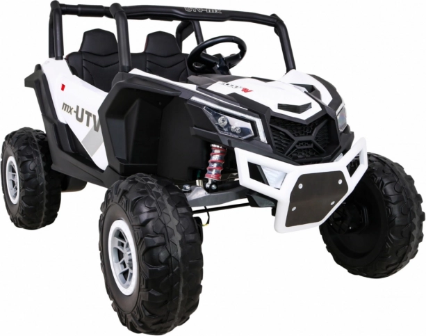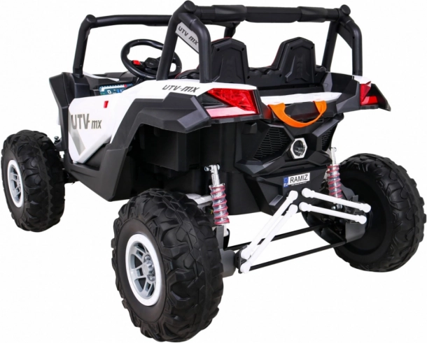 Mocne i stylowe dziecięce buggy UTV-MX z napędem 4x4, akumulatorem 24 V/7 Ah i dużymi kołami EVA oferuje płynny soft start, światła LED, wygodne siedzenie ze skóry ekologicznej z pasami oraz bogate funkcje audio, w tym Bluetooth, USB i MP3. W zestawie bezpieczny pilot 2,4 GHz dla rodziców oraz praktyczny tylny schowek/bagażnik na drobiazgi.