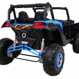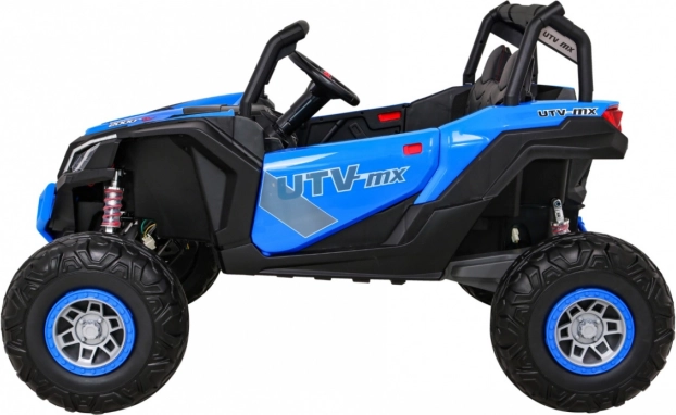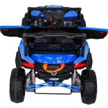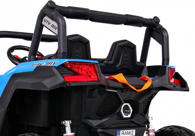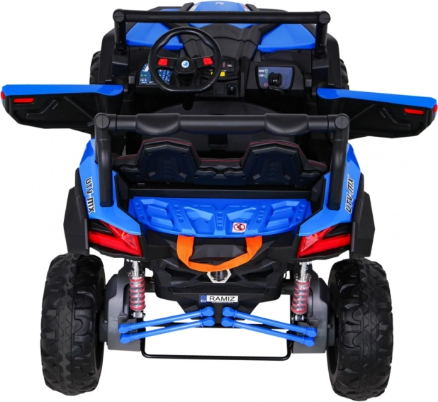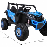 Buggy ma oświetlenie LED z przodu i z tyłu z wyłącznikiem, wskaźnik naładowania, wybór jazdy do przodu/tyłu oraz 2 biegi do jazdy do przodu sterowane dźwignią zmiany biegów. Solidna konstrukcja, duży prześwit 29 cm i udźwig 50 kg czynią to UTV idealnym wyborem dla rodzeństwa i dłuższych przejażdżek.