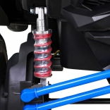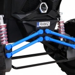 Wyrusz na przygodę z realistycznym UTV dla dzieci, które dzięki czterem silnikom 60 W (łącznie 240 W) i napędowi 4x4 radzi sobie z nierównościami i lekkim terenem. Wysokie podwozie z przednimi i tylnymi amortyzatorami oraz duże koła EVA 39 × 14 cm gwarantują stabilność, cichą pracę i komfort. Płynny start chroni małych kierowców przed szarpnięciami przy ruszaniu.