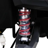 Cztery silniki 60 W, miękkie bezobsługowe opony EVA 39 × 14 cm oraz przednie i tylne zawieszenie zapewniają pewność i komfort na nieutwardzonych drogach.