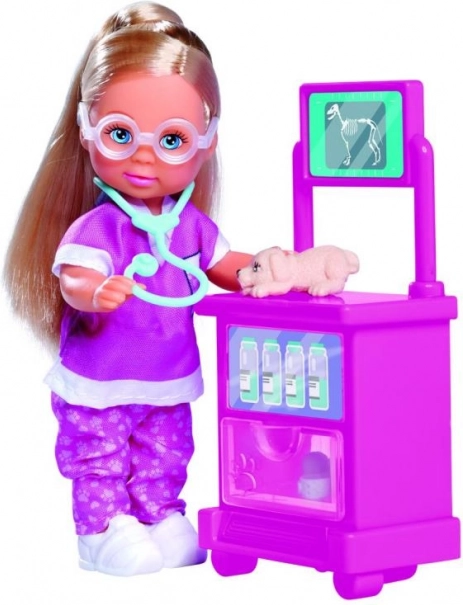 Laleczka Evi jako weterynarka ucieszy wszystkich małych miłośników zwierząt. Dzięki kompletnemu wyposażeniu, okularom i tematycznym dodatkom dzieci mogą bawić się w opiekę nad szczeniaczkami i poznawać, jak działa gabinet weterynaryjny.