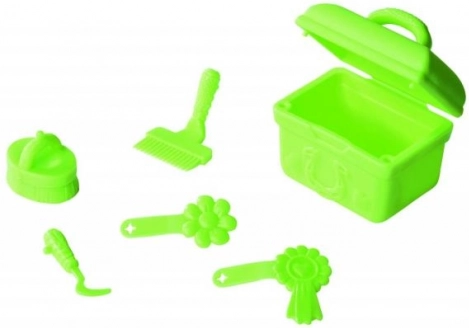 Za siedzeniem ukryto tajną przegródkę na drobiazgi. W zestawie także zielone pudełko na akcesoria dla konika.
