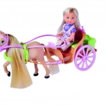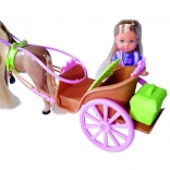 Zestaw Evi Love w romantycznym powozie daje dzieciom nieskończone możliwości tworzenia historii – od przejażdżek królowej lub księżniczki po codzienną opiekę nad konikiem. Evi wygodnie siedzi, trzyma lejce, a jej dopasowany strój podkreśla magiczną atmosferę zabawy.
