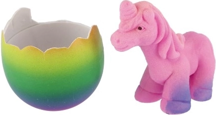 Przeżyj radość z obserwowania, jak jednorożec wylęga się z kolorowego jajka przy pomocy wody.