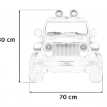 Jazdę napędzają cztery silniki 4×45 W (12000 obr./min) zasilane akumulatorem 12 V/10 Ah, dzięki czemu autko radzi sobie z nierównościami i dłuższymi wycieczkami. Dzięki płynnemu startowi i wyborowi kierunku przód/tył sterowanie jest naturalne i przyjazne dla dzieci. Maksymalny udźwig 35 kg oraz prześwit 19 cm zwiększają wytrzymałość i dzielność w terenie.