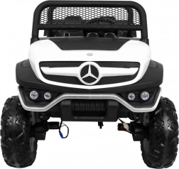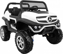 Mercedes‑Benz UNIMOG to kultowy terenowy samochodzik dla dwojga dzieci z siedziskiem z ekoskóry i pasami bezpieczeństwa. Dzięki przełączanemu napędowi 2×4 / 4×4, dużym kołom EVA (Ø 37 × 14 cm) oraz tylnym amortyzatorom z regulacją poradzi sobie w ogrodzie, na kostce i w lekkim terenie. Płynny start, jazda do przodu/tyłu i wysoki prześwit 27 cm gwarantują pewność i wygodę.