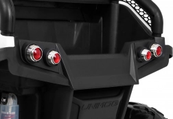 Praktyczne detale, takie jak składana rączka transportowa, czytelny wskaźnik naładowania oraz bogaty zestaw akcesoriów (ładowarka 12 V, instrukcja i zestaw montażowy, zaawansowany pokrowiec ochronny, pendrive USB z filmem instruktażowym, przewód MiniJack) czynią UNIMOG świetnym wyborem do codziennej zabawy.