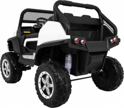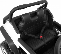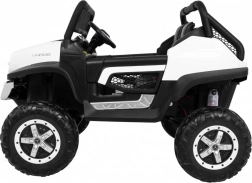 Pojemny akumulator 12 V / 14 Ah zapewnia długą jazdę, a rodzicielski pilot 2.4G z wyborem 3 prędkości i awaryjnym przyciskiem STOP daje pełną kontrolę. Dzieci ucieszą światła LED z przodu i z tyłu, otwierane drzwi, tylny schowek oraz panel multimedialny z Bluetooth, USB, MicroSD, AUX (możliwość mikrofonu), MP3 i radiem FM.