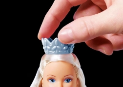 Obrotem korony dzieci same wybiorą wygląd: romantyczna różowa kwiatowa sukienka w jednej chwili zmienia się w elegancką białą suknię ślubną.