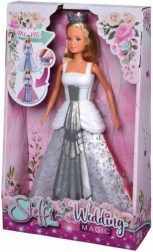 Lalka STEFFI LOVE Magiczne wesele zapewnia zachwycające wrażenia dzięki sprytnemu mechanizmowi przemiany sukienki 2w1. Jednym obrotem korony romantyczna różowa kwiatowa sukienka zmienia się w piękną białą suknię ślubną. Długie blond włosy można czesać i stylizować, więc każda zabawa będzie inna.