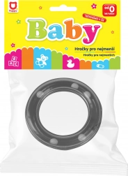 Leciutka i łatwa do chwytania grzechotka w kształcie pierścienia w eleganckim czarnym kolorze. Dzieci pokochają jej delikatny dźwięk grzechotania, który przyciąga uwagę i wspiera rozwój zmysłów oraz małej motoryki.