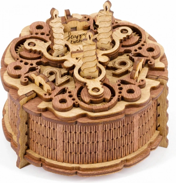 Precyzyjne wykonanie z drewna brzozowego i laserowo wycinane detale czynią z niego stylowy i wielokrotnego użytku prezent. Dzięki dołączonym cyfrom można ustawić wiek na torcie, więc świetnie sprawdzi się na różne uroczystości i jubileusze. Idealne jako kreatywne opakowanie prezentowe na pieniądze, biżuterię czy małą niespodziankę.