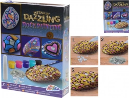Twórz unikalne dekoracje i prezenty z lśniącymi, metalicznymi efektami. Zestaw jest odpowiedni dla początkujących i zaawansowanych – po prostu otwórz farby, puść wodze fantazji i ozdób naturalne kamienie oryginalnymi wzorami. Dzięki brokatowi i samoprzylepnym kamykom uzyskasz efektowny rezultat w kilka chwil.