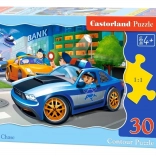 Ten zestaw puzzli jest idealny dla małych początkujących. Dzięki większym elementom i wyrazistym kolorom dzieci łatwo poradzą sobie z układaniem, jednocześnie trenując małą motorykę, cierpliwość i koncentrację. Motyw policyjnego pościgu wnosi do zabawy akcję i napięcie, które dzieci lubią.