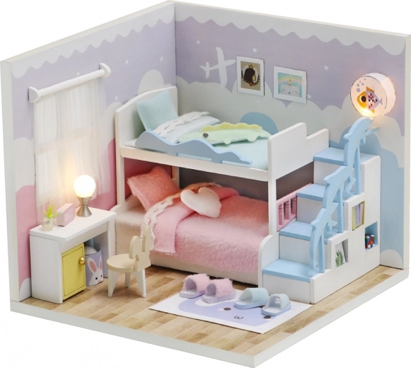 Stwórz własny miniaturowy świat z romantyczną sypialnią „Słodkie sny”. Zestaw oferuje przyjemne chwile podczas składania, klejenia i dopracowywania detali. Gotowy model dzięki oryginalnemu wyglądowi stanie się piękną dekoracją do pokoju lub biura. Zestaw dostarczany jest w stanie rozłożonym i zawiera oświetlenie LED dla magicznej atmosfery.