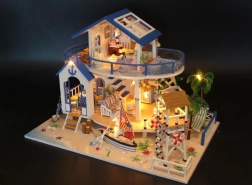 Stwórz malowniczy domek w stylu nadmorskiego kurortu z biało-niebieską paletą, werandą oraz bogatym wyposażeniem mebli i dekoracji. Precyzyjnie dopracowane detale, działające lampki LED i przyjemna atmosfera czynią z niego wyjątkowy element wystroju oraz świetny projekt na wolny czas.