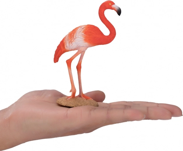 Dynamiczna poza flaminga ze szczegółowym upierzeniem oraz praktyczną podstawką do stabilnej ekspozycji na półce lub biurku.