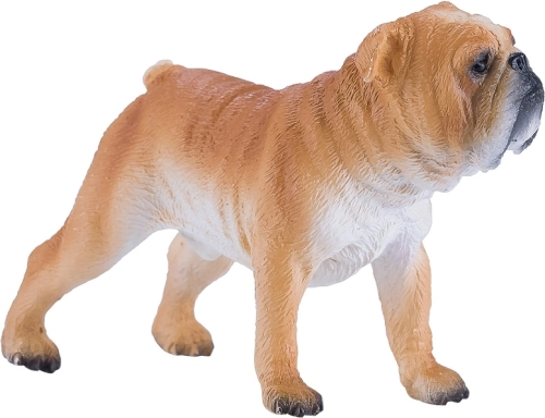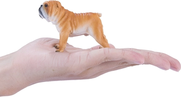 Ta szczegółowa figurka buldoga angielskiego wyróżnia się realistycznym wyglądem – od masywnej głowy i krótkiego pyska po typowe zmarszczki i krępą sylwetkę. Dzięki starannemu ręcznemu malowaniu wygląda bardzo wiarygodnie i stanie się ulubionym elementem dziecięcej kolekcji oraz gabloty dorosłych kolekcjonerów.