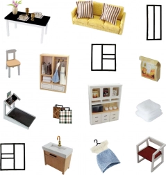 Ten zestaw zawiera oświetlenie LED, które nadaje Twojemu dziełu realistyczny wygląd. Niezwykle interesujące są również realistyczne dekoracyjne detale, w tym artystyczne ściany, sofa i zestaw jadalniany.