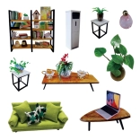 Złóż meble jak w prawdziwym domu, od zielonej sofy po drewniany stolik kawowy.