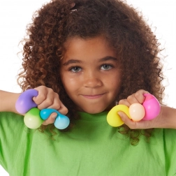 Teenie NEE DOH to mniejsza wersja kultowych ściskanych piłeczek, zaprojektowana tak, aby idealnie mieściła się w dziecięcej dłoni. Dzięki ultra miękkiemu wypełnieniu zapewniają przyjemny opór podczas ścisku i pomagają redukować stres oraz niepokój. Piłeczki można ściskać, rozciągać i spłaszczać – za każdym razem wracają do swojego kształtu.