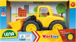 Dziecięca ładowarka Lena Workies z wytrzymałego plastiku ABS z gumowanymi kołami i ocynkowaną stalową osią (4 mm) jest idealna dla małych budowniczych. Łatwa w obsłudze, wspiera kreatywność i wyobraźnię i nadaje się do zabawy w domu i na zewnątrz.