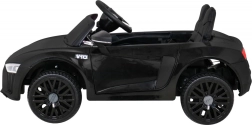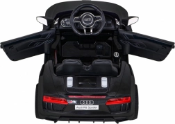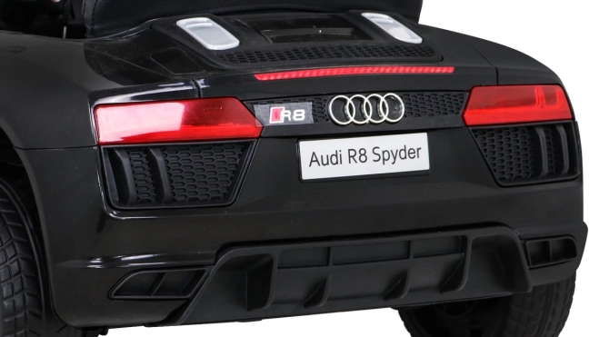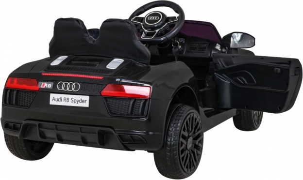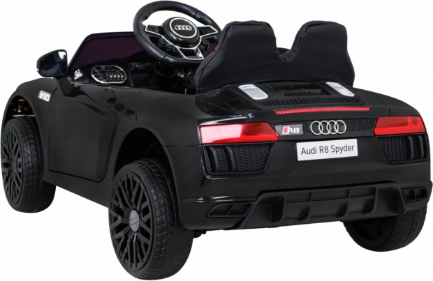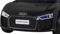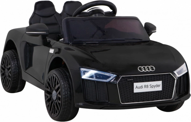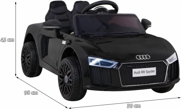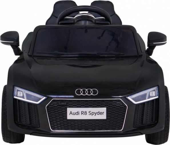 Mały kierowca, wielka radość. Elektryczny samochodzik AUDI R8 Spyder w eleganckim czarnym kolorze oferuje atrakcyjny wygląd prawdziwego auta sportowego, proste sterowanie i bezpieczną jazdę. Dzięki dwóm silnikom 35 W i płynnemu rozruchowi jazda jest komfortowa i stabilna, a przednie i tylne zawieszenie tłumi nierówności.