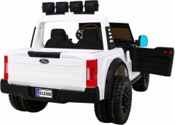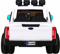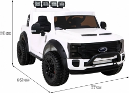 Solidny dziecięcy elektryczny samochód w stylu pick-upa z licencją FORD zapewnia realistyczne wrażenia z jazdy. Oferuje 4×45 W silniki, mocny akumulator 12 V 14 Ah, miękkie koła EVA, skórzane siedzenia z pasami oraz zdalne sterowanie 2,4 GHz dla bezpiecznej jazdy. Bogate oświetlenie LED, panel audio z MP3/USB/AUX i otwierane drzwi ucieszą każdego małego kierowcę.