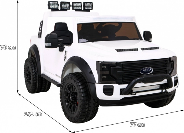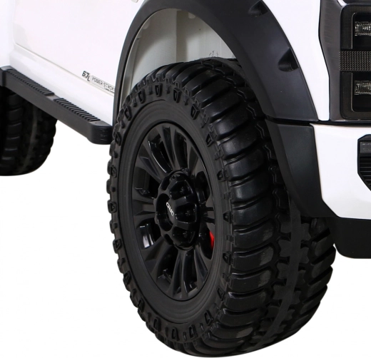 Ten duży elektryczny pick-up FORD Super Duty stworzono do przygód. Dzięki napędowi na cztery koła (4×45 W) i wysokiej dzielności z prześwitem 17 cm poradzi sobie zarówno na kostce, jak i w ogrodzie. Mocny akumulator 12 V 14 Ah wydłuża zabawę do maksimum, a płynny start zapewnia komfortowe i bezpieczne ruszanie.
