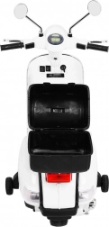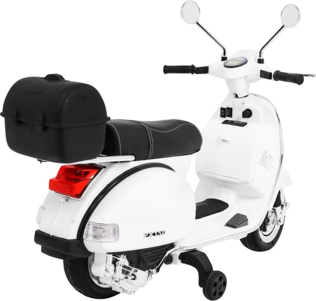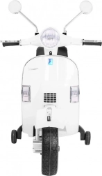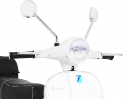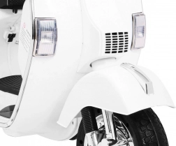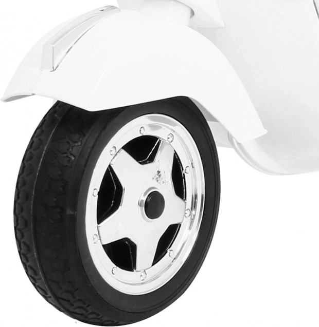 Odkryj magię jazdy na kultowym skuterze Vespa dostosowanym dla dzieci. Ten elektryczny skuter jest wyposażony w nowoczesne funkcje, takie jak kółka pomocnicze dla bezpieczniejszej jazdy, system audio oraz komfortowe czarne siedzenie z ekoskóry.