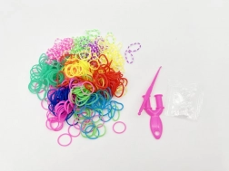 Kreatywny zestaw do wyrobu bransoletek Loom Bands. Stwórz własną biżuterię i ozdoby z gumek, ozdób siebie i spraw radość także znajomym. Zestaw w pudełku w kształcie motyla zawiera 500 kolorowych gumek, mały ręczny krosno oraz szydełko. Wszystko, czego potrzebujesz do samodzielnego tworzenia bransoletek z gumek. 500× gumka, szydełko, łączniki
