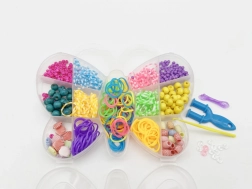 Twórz oryginalne bransoletki, breloki i ozdoby z zestawem Loom Band. Sercem zestawu jest praktyczne pudełko w kształcie kwiatka, które utrzymuje elementy w przejrzystym porządku. Dzięki bogatej palecie gumek i koralików z łatwością połączysz różne kolory i style, niezależnie od tego, czy tworzysz dla siebie, czy na prezent.