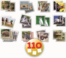 Rodzinna zabawa z pexesem, które zawiera 110 kart z fotografiami zwierząt z natury. Idealne do treningu pamięci dzieci i dorosłych.