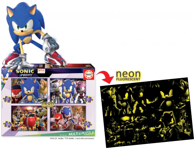 EDUCA Świecące puzzle Sonic Prime 4 w 1 (50, 80, 100, 150 elementów)