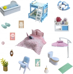 Teleskop, huśtawka, zjeżdżalnia, baloniki i inne drobiazgi ożywiają scenę. Dzięki wielu dekoracjom dopasujesz domek dokładnie do swojej fantazji.