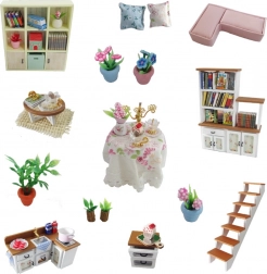 Dwukondygnacyjna willa z sypialnią, salonem i kuchnią w delikatnych kolorach zachwyca bogatym wyposażeniem i realistycznymi dodatkami.