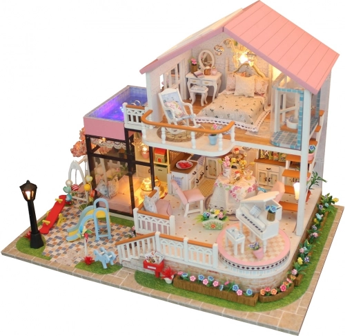 Odkryj urok miniatur dzięki temu detalicznemu zestawowi do budowy uroczej willi, który zachwyci miłośników tworzenia i dekoracji. Złóż własny mały dom z meblami, dodatkami i funkcjonalnym oświetleniem LED. Zestaw rozwija motorykę małą, cierpliwość i kreatywność, a po ukończeniu stanie się piękną dekoracją wnętrza.