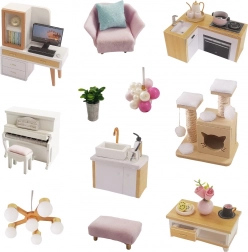 W komplecie znajdują się miniaturowe mebelki i akcesoria, które umożliwią szczegółową aranżację wnętrza dokładnie według Twoich wyobrażeń.