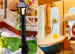 Ten dopracowany miniaturowy domek jest idealny dla wszystkich, którzy kochają kreatywne tworzenie i realistyczne detale. Zestaw dostarczany jest w postaci do samodzielnego montażu i zapewnia przyjemnie relaksujący czas podczas składania, klejenia i dopracowywania dodatków. Po ukończeniu otrzymasz wyjątkowy dekoracyjny model z przytulnymi pomieszczeniami i funkcjonalnym oświetleniem LED.