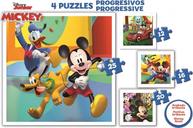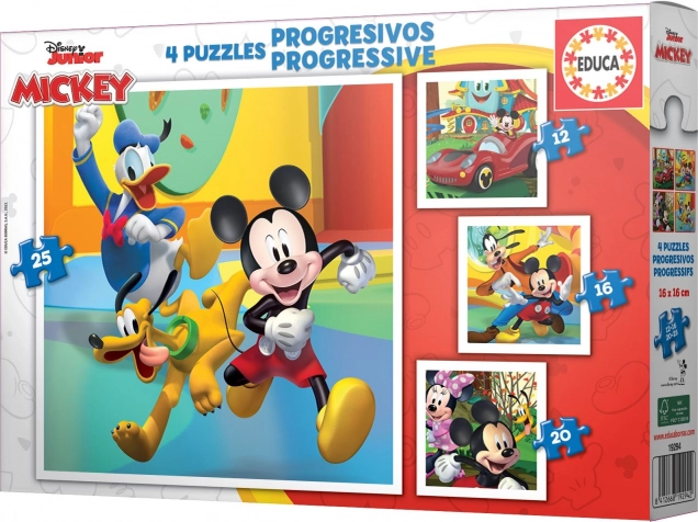 To puzzle Educa Mickey i przyjaciele zawiera cztery różne obrazki z różną liczbą elementów, co umożliwia stopniowe zwiększanie trudności. Dzieci mogą wybierać między 12, 16, 20 i 25 elementami, dzięki czemu stale doskonalą swoje umiejętności układania.