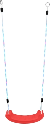 Ta wysokiej jakości huśtawka 2Kids Toys w czerwonym kolorze oferuje bezpieczne bujanie i efekty wizualne dzięki podświetlanym linkom LED z wieloma trybami świecenia. Sterowanie jest proste za pomocą dołączonego pilota, więc łatwo dopasujesz nastrój do każdej zabawy.