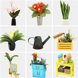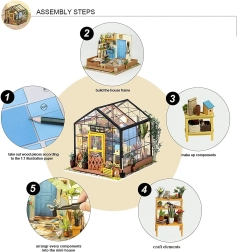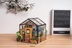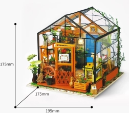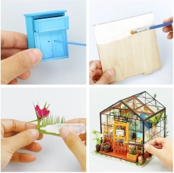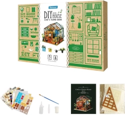 Odkryj urok miniatur z modelem Robotime Mini Szklarnia. W pudełku znajdziesz wstępnie wycięte elementy ze sklejki, papierowe nadruki, tkaninowe i metalowe detale, które po pomalowaniu i sklejeniu stworzą efektowną szklarnię pełną roślin i akcesoriów ogrodowych. Oświetlenie LED nada gotowemu modelowi ciepłą, przytulną atmosferę.